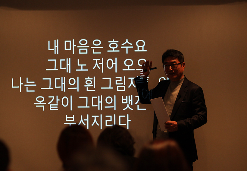 ‘마음’과 ‘호수’가 만나 낯설고 새로운 느낌을 준다. 하지만 많은 사람들이 이 구절을 기억하고 있는 이유는 이 두 단어의 만남에 의미를 부여하는 ‘상관성의 문장’이 있기 때문이라고 훈장님은 말하신다.